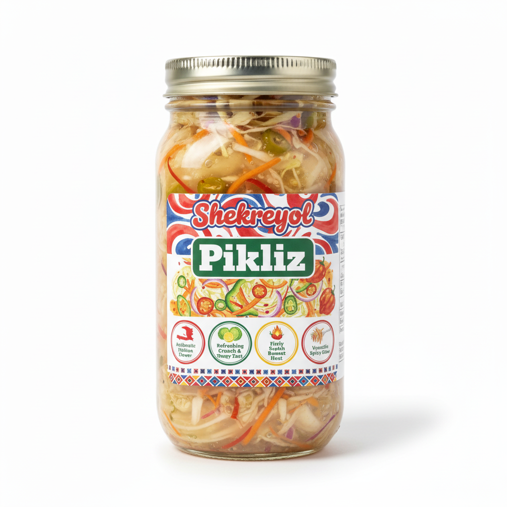 A fiery, crunchy condiment made from shredded cabbage, carrots, bell peppers, and scotch bonnet peppers. The ultimate Haitian flavor enhancer.